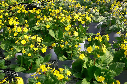 鮮やかな黄色の花が段になって咲き、花数が多長く楽しめます。ガーデンで幼苗から育てれば自然開花が可能です。葉は、グリーンと粉をかけたような薄緑があります。