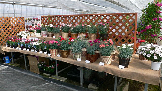 4月上旬に矢祭園芸の敷地内においてカーネーションの矢祭鉢物研究会の内覧会を