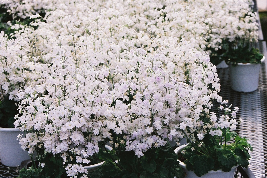 プリムラマラコイデスのメローシャワーは葉っぱにメロンの香りのする品種です。マラコイデスの中には葉っぱに香りがするものは以前から存在していましたが、それを独自に選抜・育種を繰り返し現在の香りがするものを育種しました。